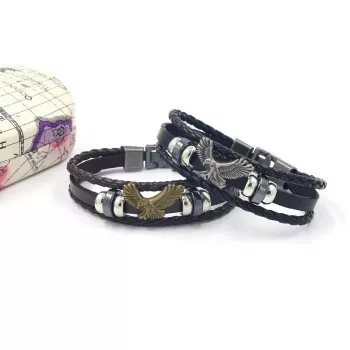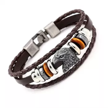 Vintage Eagle Head Multilayer Woven Leather Bracelet