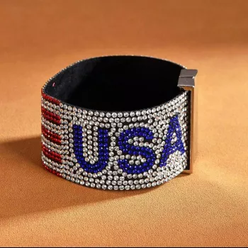 Patriotic Crystal Charm Bracelet with Red and Blue Beads for Men and Women