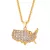 Express your pride and love for the United States with the striking Patriotic Iced Out US Map Pendant Necklace. Crafted from high-quality 316L stainless steel, this trendy necklace features a stunning map of the USA, intricately detailed and available in three elegant colors: gold, rose gold, and black. The pendant is adorned with shimmering rhinestones that catch the light beautifully, making it a perfect accessory for any occasion.